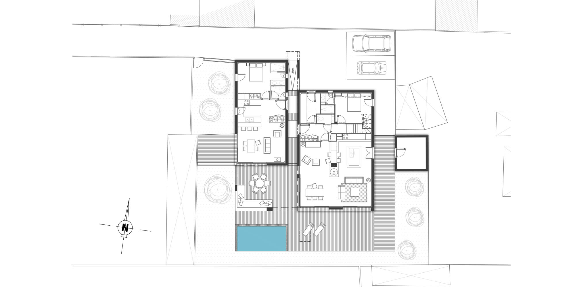 Les continuités intérieur-extérieur et les généreuses terrasses orientées au sud en font une maison agréable à vivre !