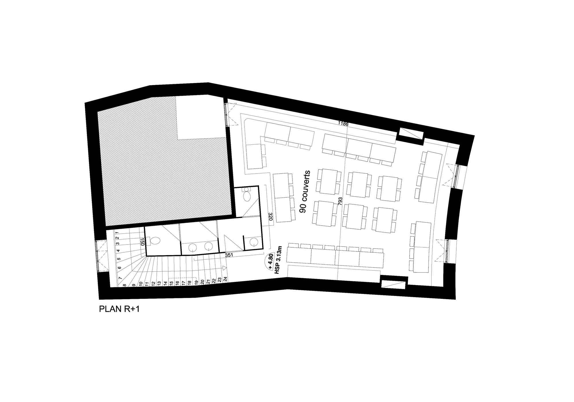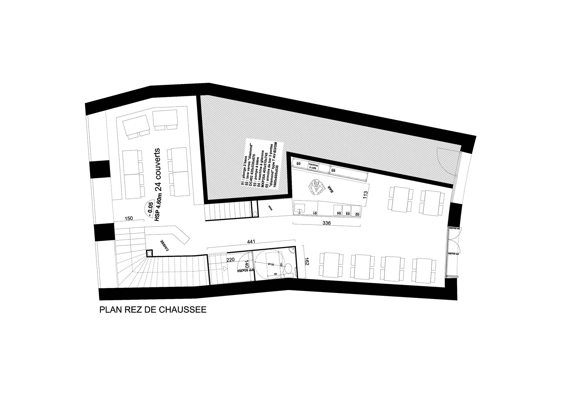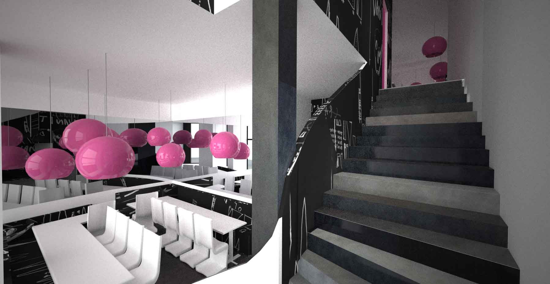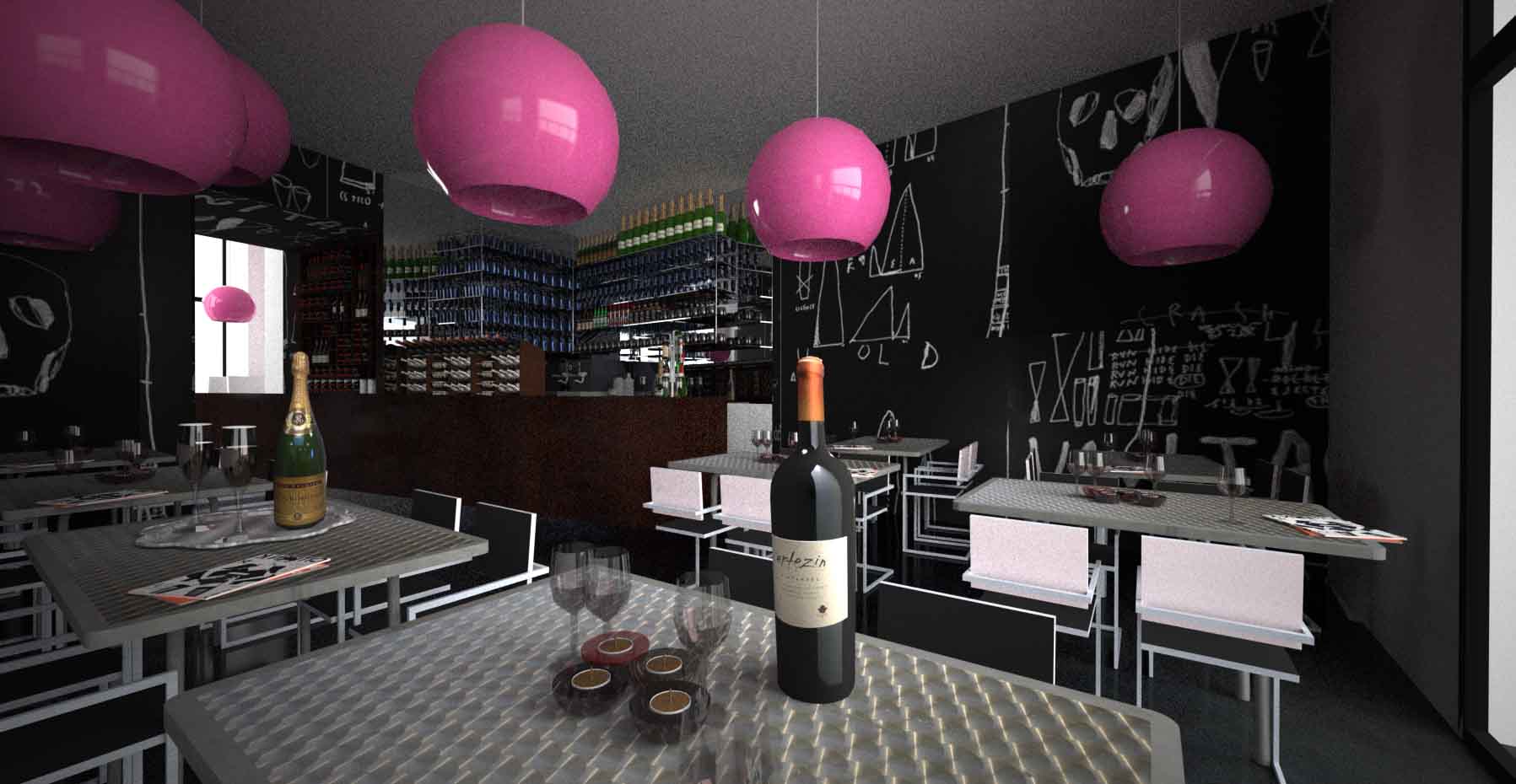 Concours pour la réhabilitation et la rénovation de la Brasserie Tourny. Tout l'enjeu a donc été de fournir une identité contemporaine et urbaine. Ainsi, le traitement de la salle de restauration s'est fait dans la dualité de matériaux très bruts et sobres -ardoise, métal, béton- avec des éléments très colorés que sont les luminaires et les sièges.