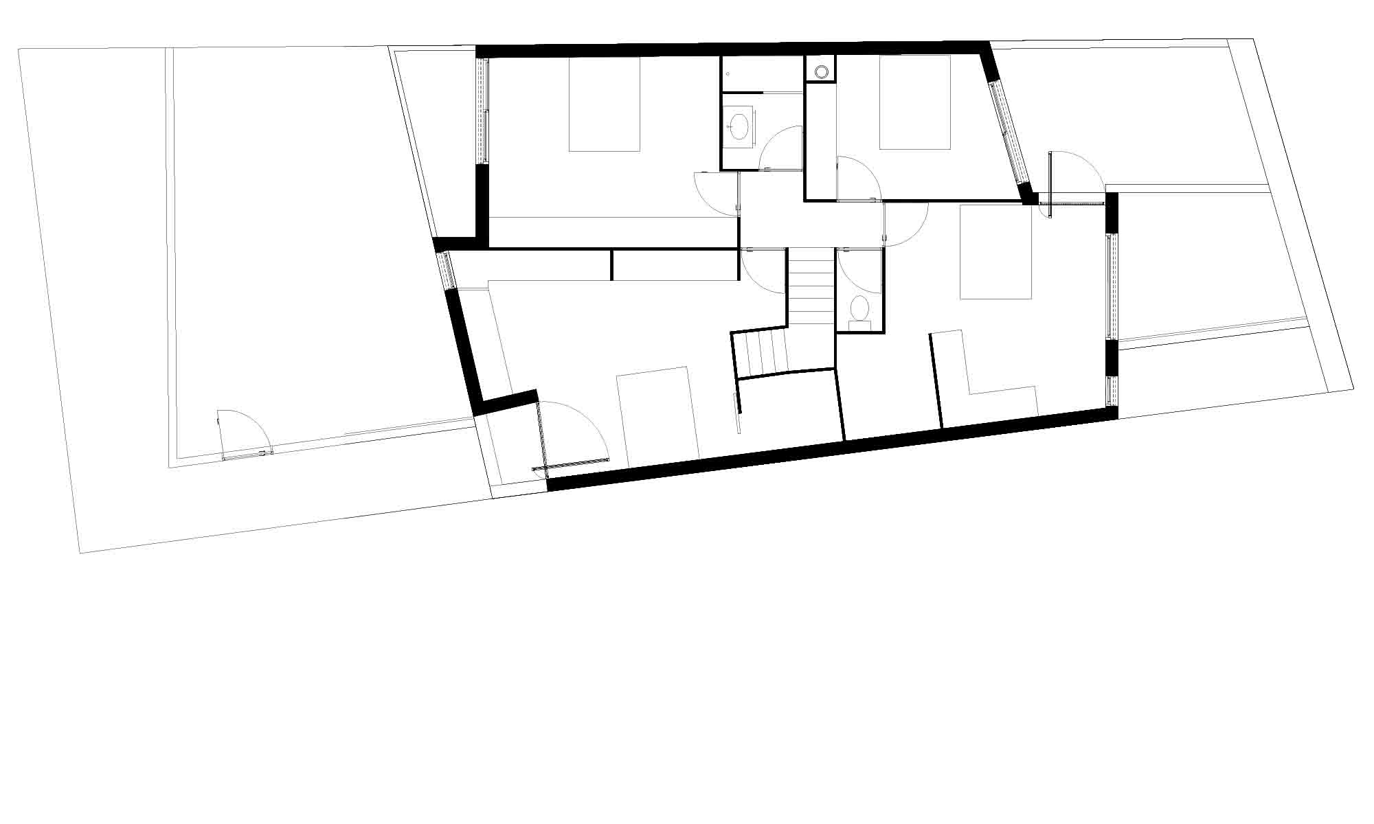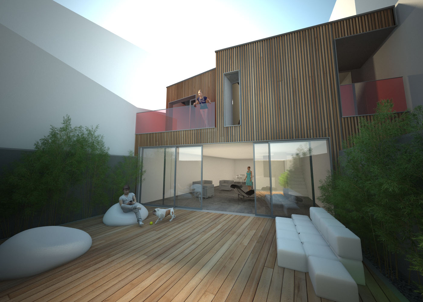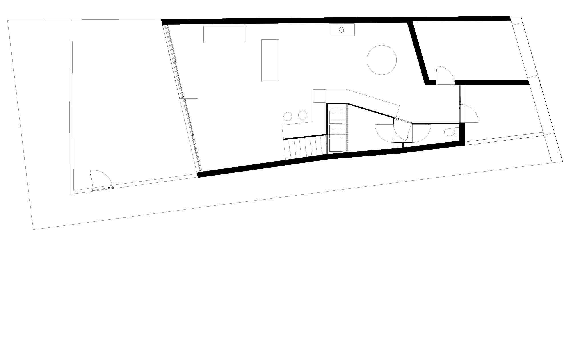 Le projet s'inscrit dans un bati laissé à l'abandon, dont la façade sur rue est l'unique élément conservable. La parcelle, étroite et bordée de petits immeubles Bordelais, donne au projet l'opportunité de créer un logement traversant. Pour s'éloigner des nuisances de la rue, les pièces techniques -garage, buanderie- sont positionnées le long de la rue. A l'étage une terrasse vient se glisser entre la façade en pierre conservée et la façade nouvellement créée. L'intervention permet de conserver une partie de jardin en coeur d'ilot, exploité comme une véritable continuité du séjour.