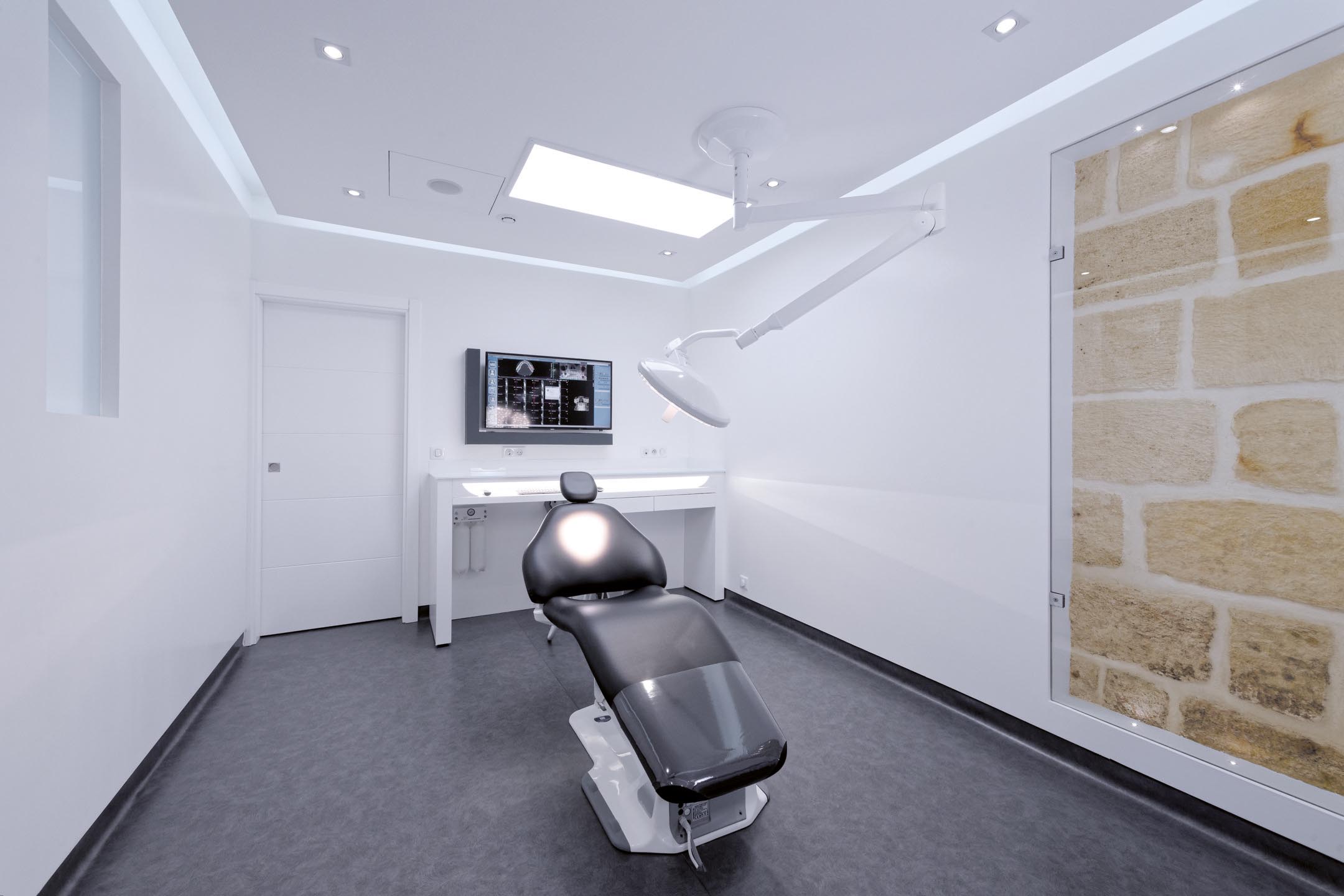 Un puits de jour a été créé au fond du local pour éclairer les deux autres cabinets de soins et pour en faire un lieu de vie au sein du cabinet dentaire.