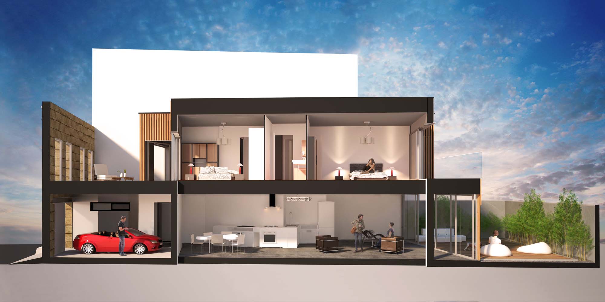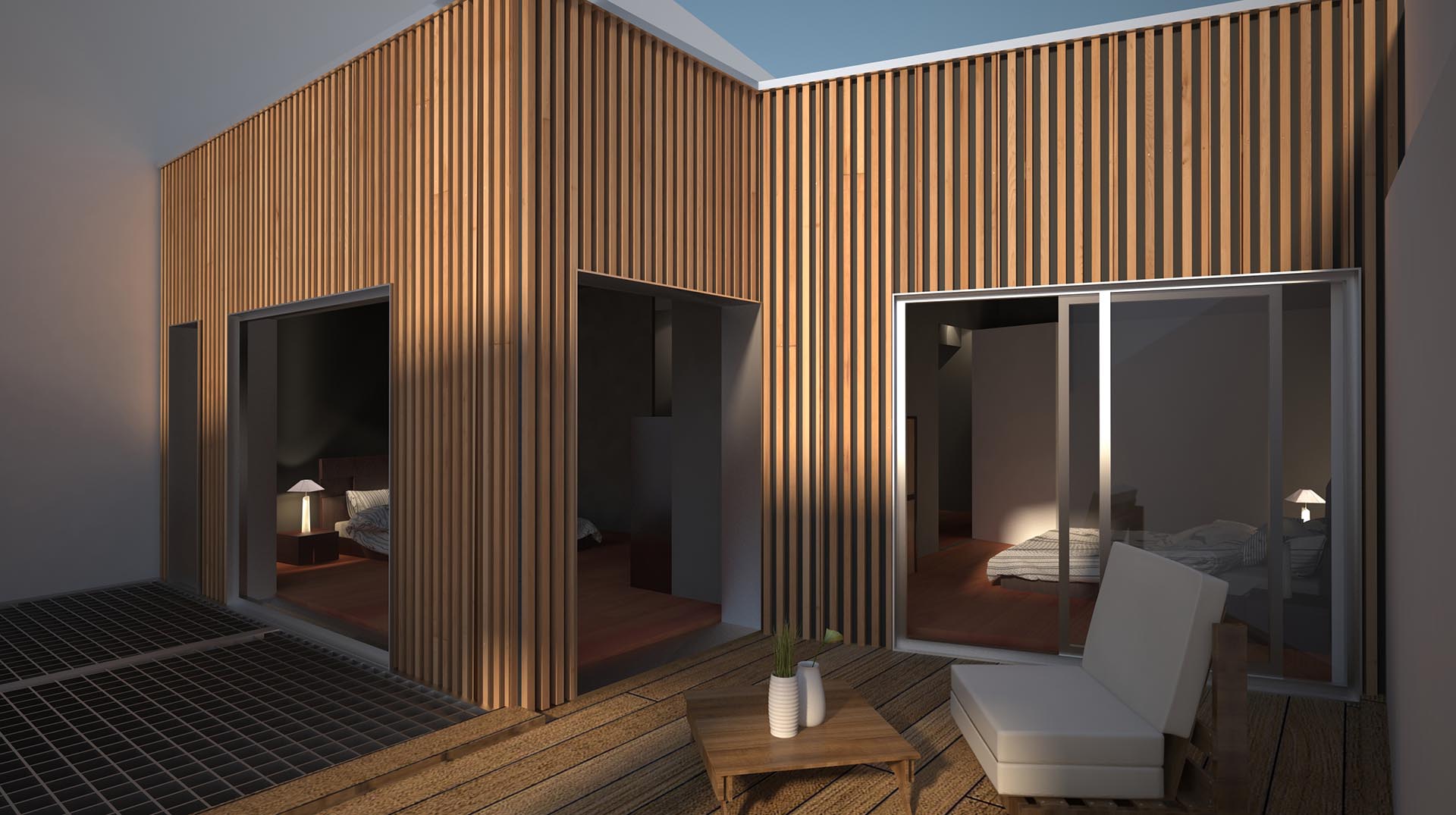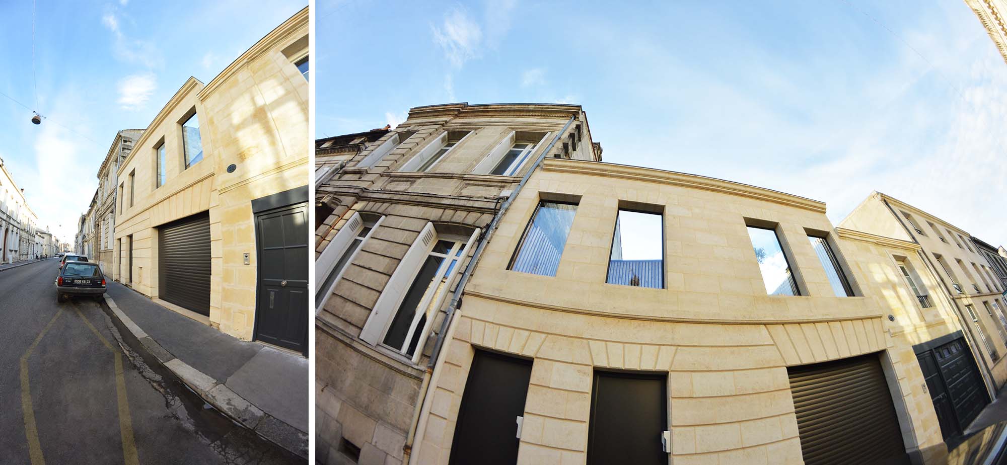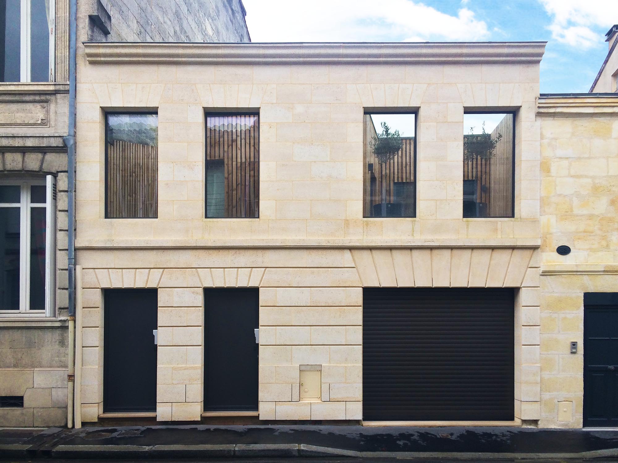 Le projet s'inscrit dans un bati laissé à l'abandon, dont la façade sur rue est l'unique élément conservable. La parcelle, étroite et bordée de petits immeubles Bordelais, donne au projet l'opportunité de créer un logement traversant. Pour s'éloigner des nuisances de la rue, les pièces techniques -garage, buanderie- sont positionnées le long de la rue. A l'étage une terrasse vient se glisser entre la façade en pierre conservée et la façade nouvellement créée. L'intervention permet de conserver une partie de jardin en coeur d'ilot, exploité comme une véritable continuité du séjour.