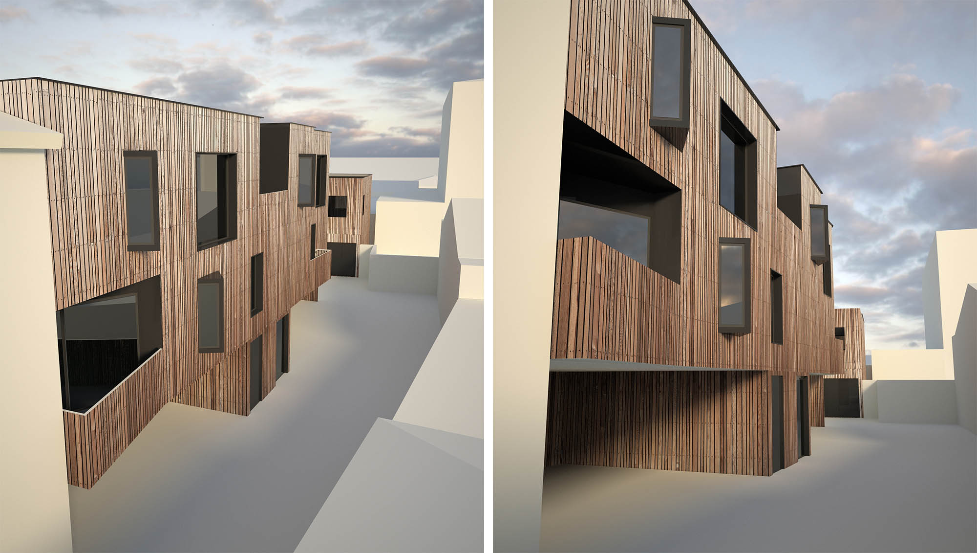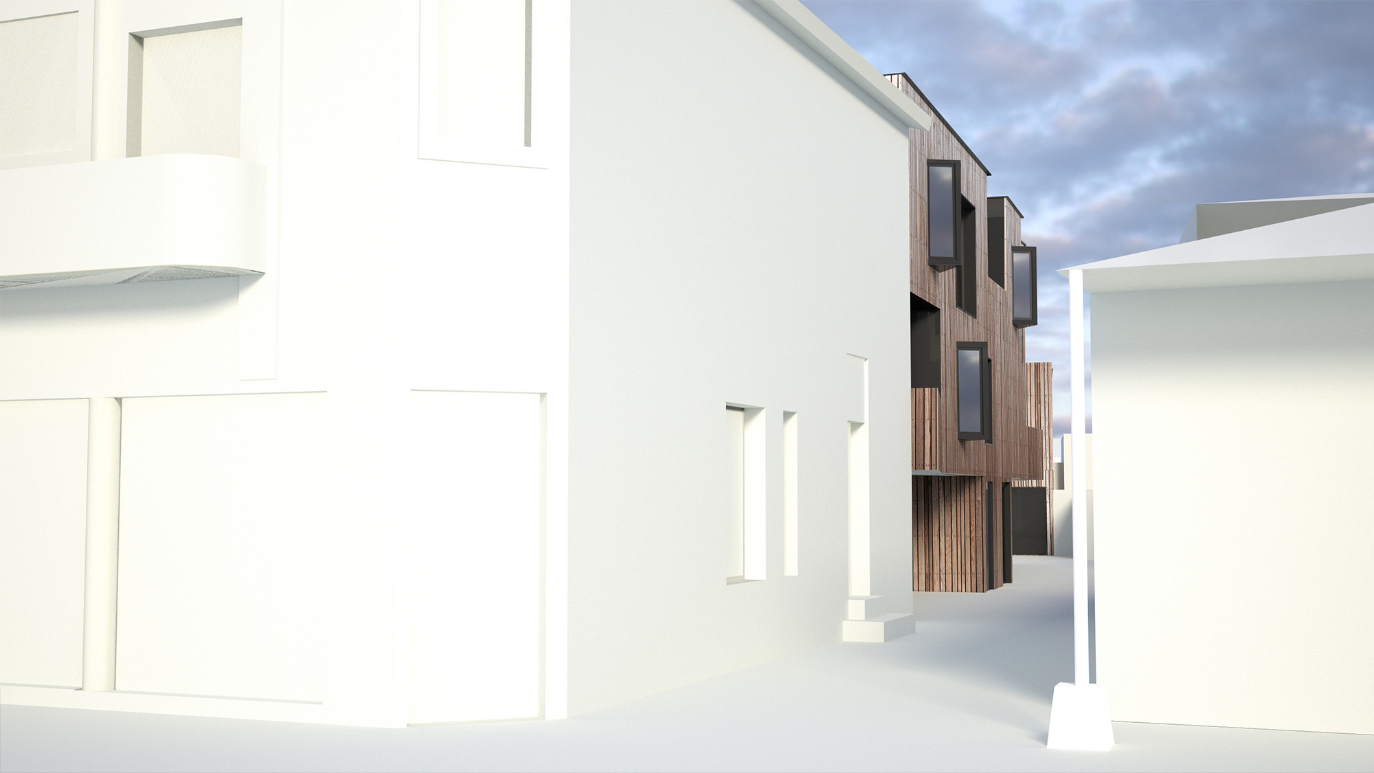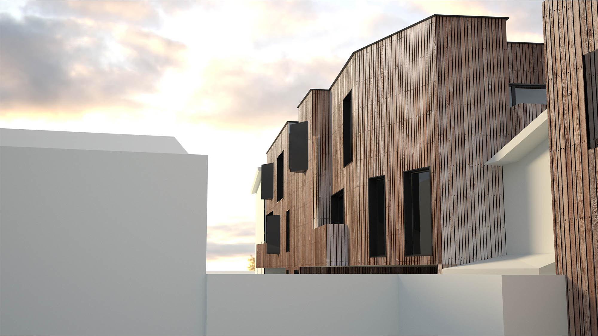 A quelques dizaines de mètres du Bassin d’Arcachon, le projet prend place dans une ruelle perpendiculaire à la rue piétonne si fréquentée en période estivale. La réhabilitation et l’extension du bâtiment existant doivent jouer avec l’étroitesse de la parcelle et l’unique orientation possible des ouvertures. Ainsi, le projet travaille sur un jeu de plein et de vides, alternant les terrasses en creux, les bow-windows et les grandes parois vitrées. La façade, recouverte de lames verticales en bois, semble onduler et se creuser dans la perspective de la ruelle.